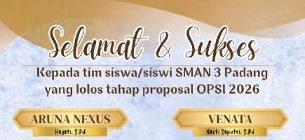 SELAMAT DAN SUKSES Selamat kepada 24 TIM SISWA/SISWI SMAN 3 PADANG YANG LOLOS SELEKSI NASIONAL OLIMPIADE PENELITIAN SISWA INDONESIA (OPSI) 2026. ...